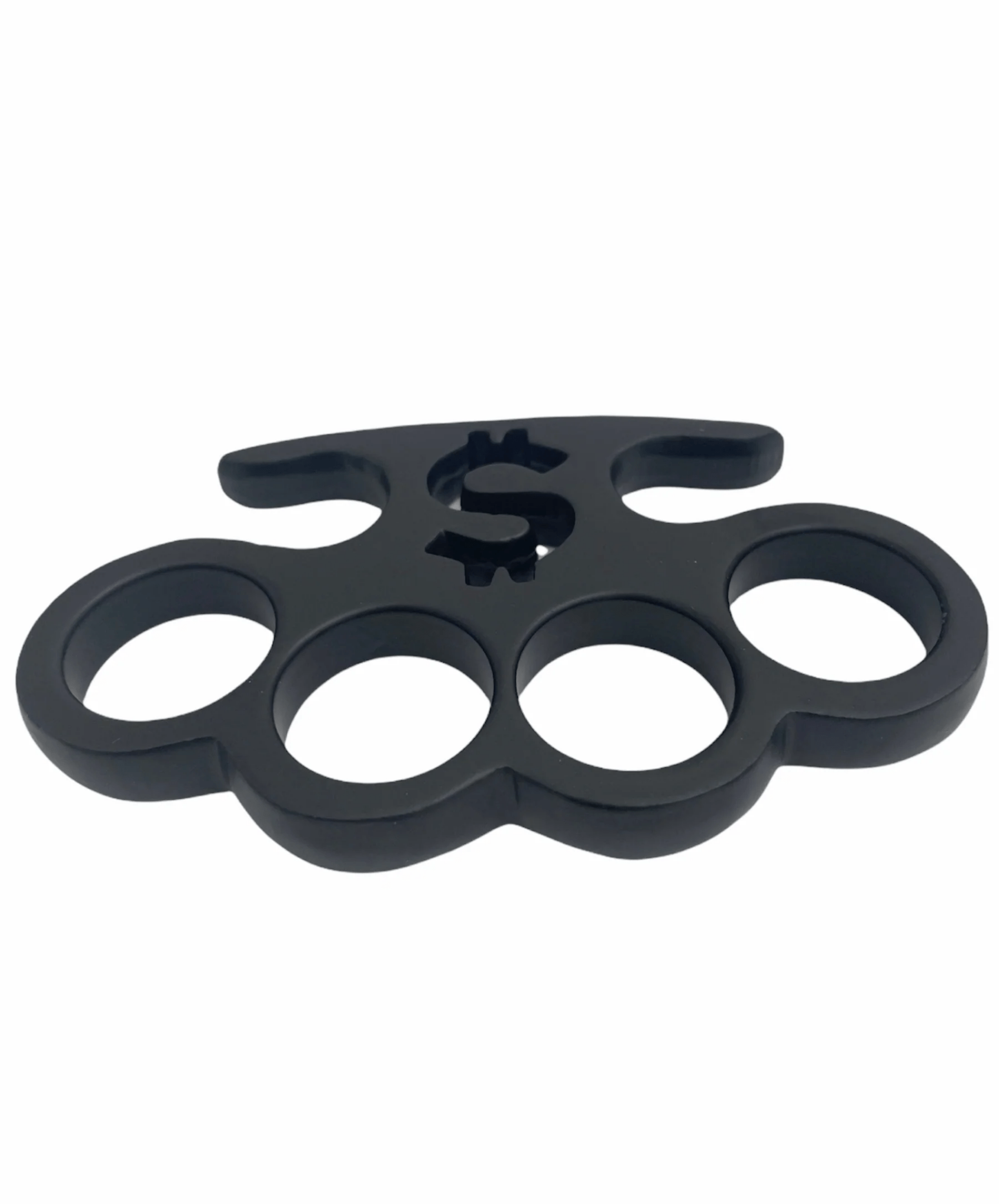 Turn heads and stack wins with the Stack Breaker—a bold, all-black steel knuckle designed for those who grind hard and shine harder. Cut from heavy-duty black steel, this 8.5-ounce brawler features a standout dollar sign cutout, delivering a clean, modern look with street-smart attitude.