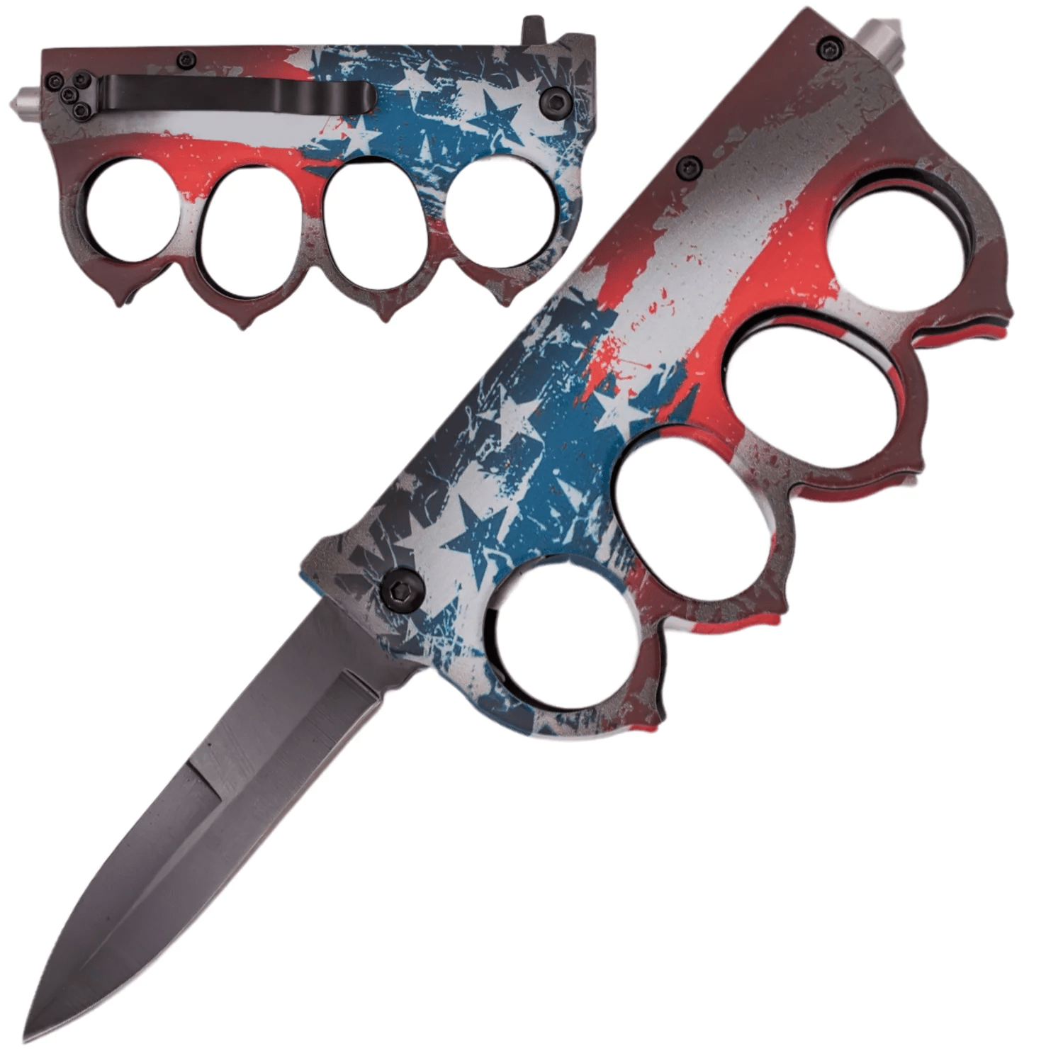 This one’s for the die-hards. The Freedom Grip Edition brings red, white, and wreckage with every flick of the wrist. Inspired by World War I trench knives and reborn in full patriotic grit, this blade doesn’t just wave the flag—it wields it.